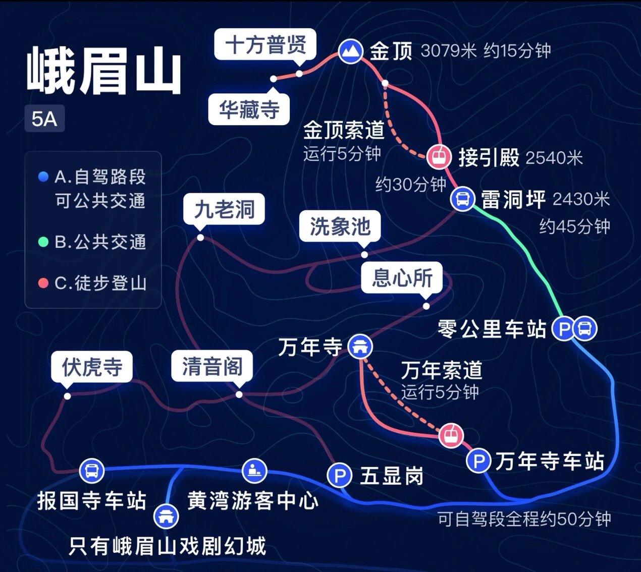3、自駕:對于喜歡自駕的游客,從成都出發(fā),沿成樂高速公路,再轉(zhuǎn)乘峨眉山路,即可抵達(dá)峨眉山景區(qū)。