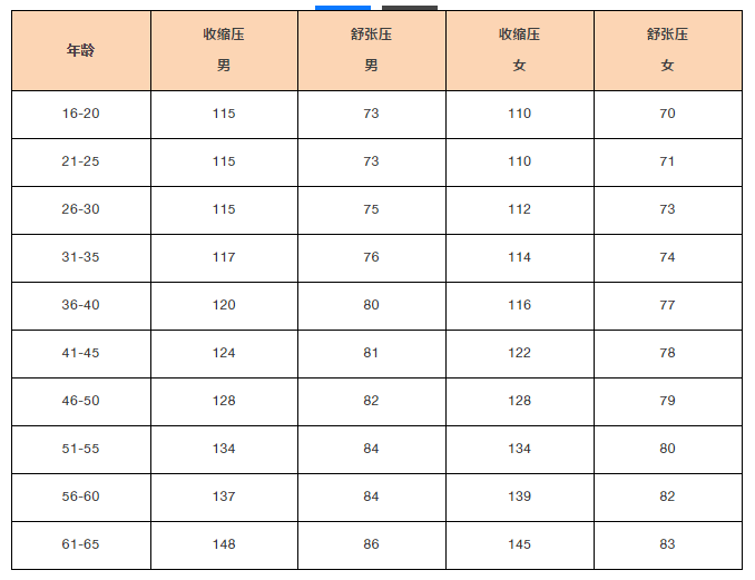 以下是針對40歲至50歲人群的血壓對照表(單位:mmHg):