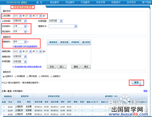 輸入出發(fā)地、目的地和日期后,點擊查詢,即可看到相關的列車時刻表。