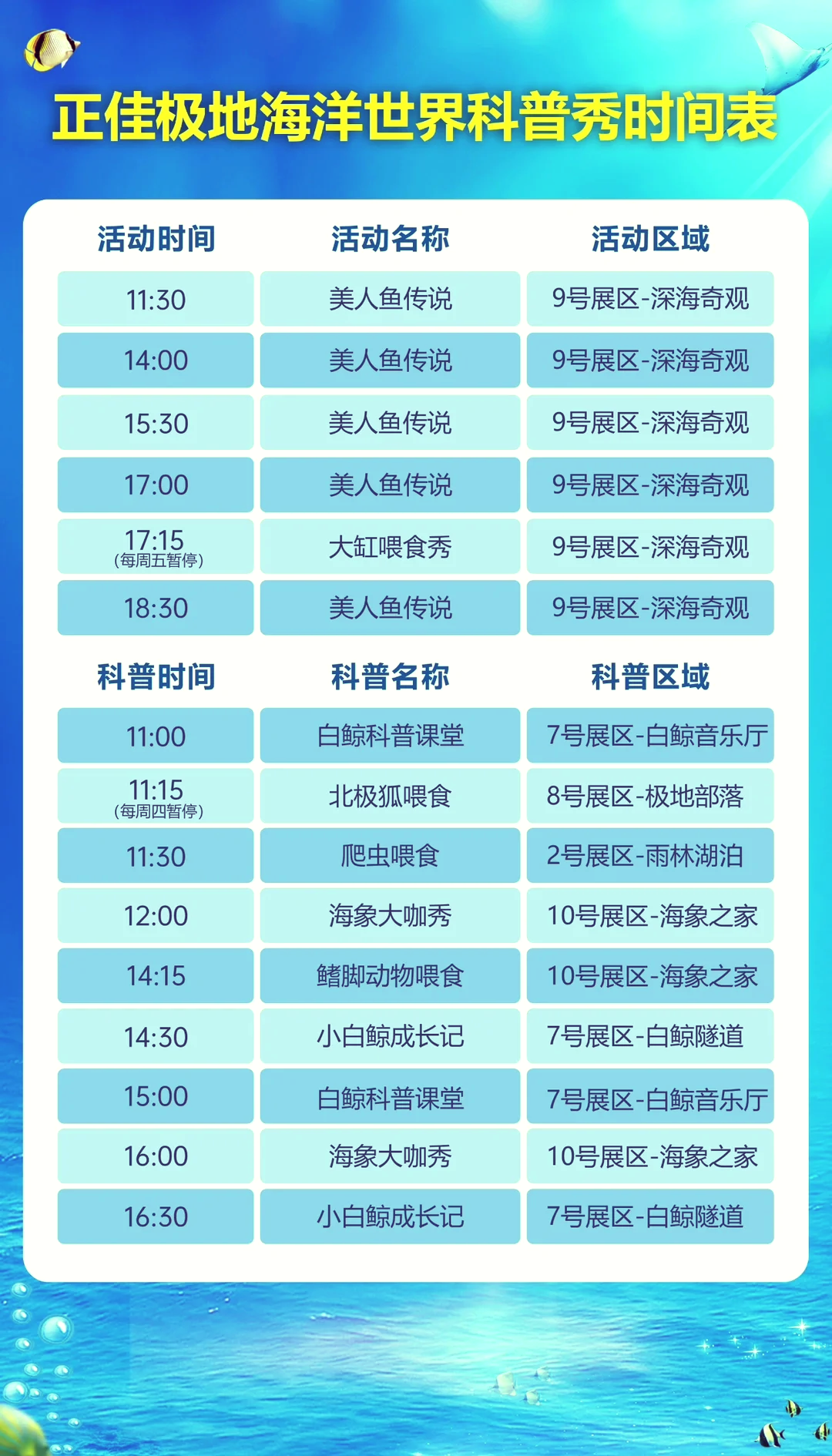 3、為了確保游客的安全和良好游覽體驗,請遵守景點的規(guī)定,不要隨意觸摸或喂食海洋生物。